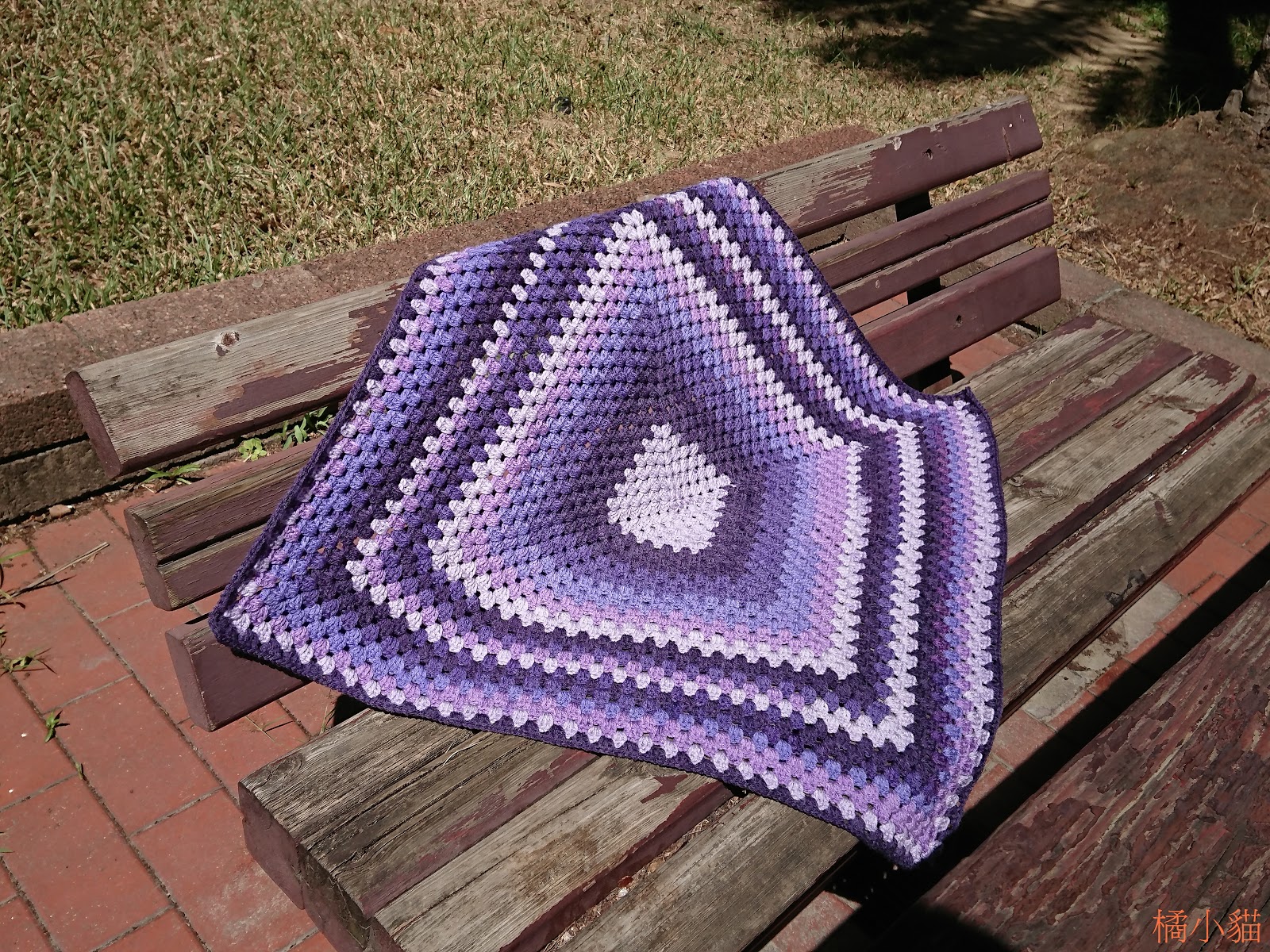 這組漸層的線織起來很有立體感。 一天就完成,小貓的動作好快啊。